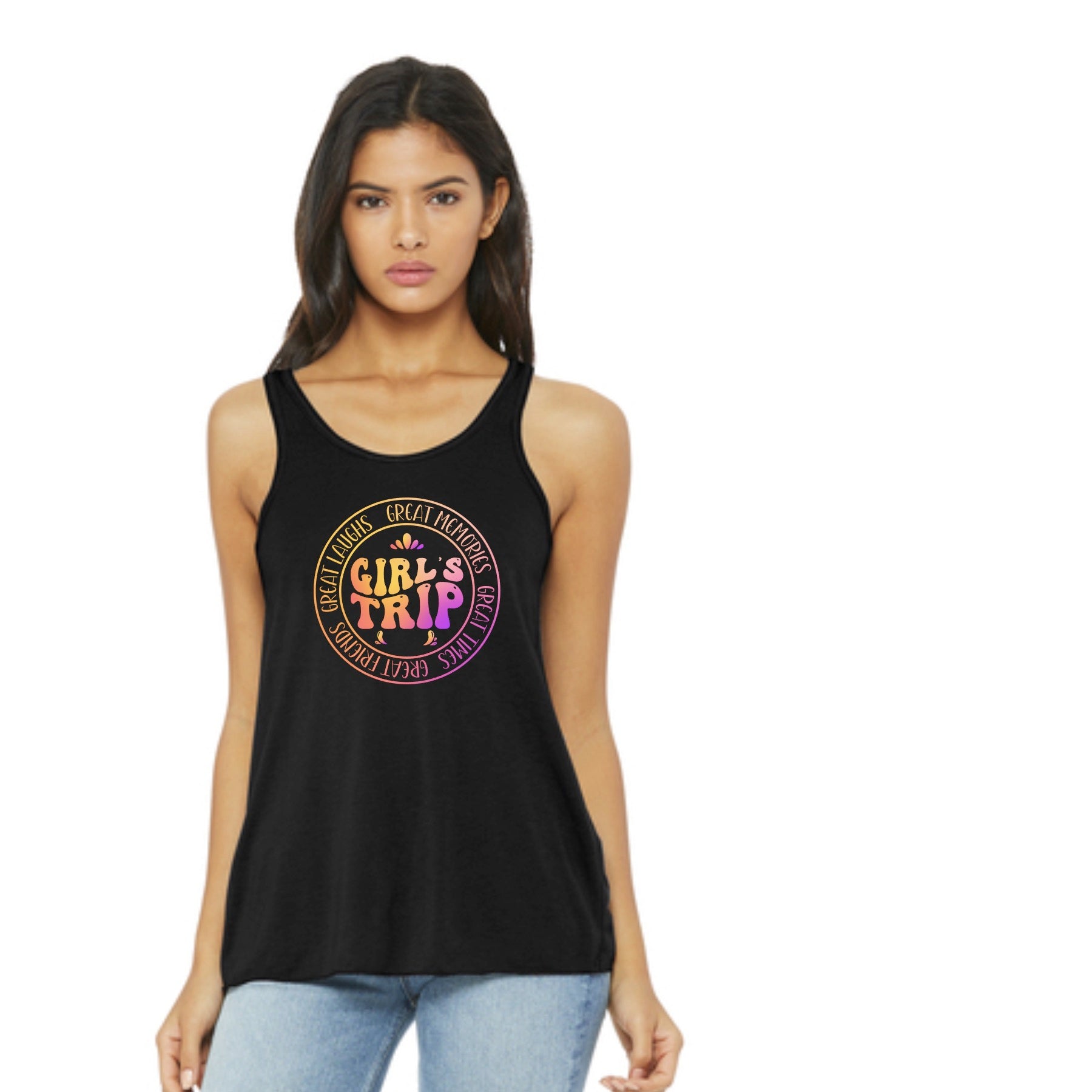 Get ready to hit the road with your girls in style with our Girls Trip 2024 tanks. Perfect for a weekend getaway, these tanks will keep you cool and comfortable while showing off your squad's unique bond. No trip is complete without these tanks (and your besties)!