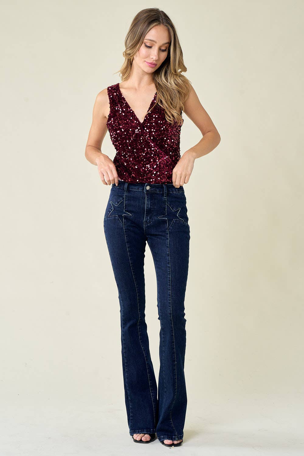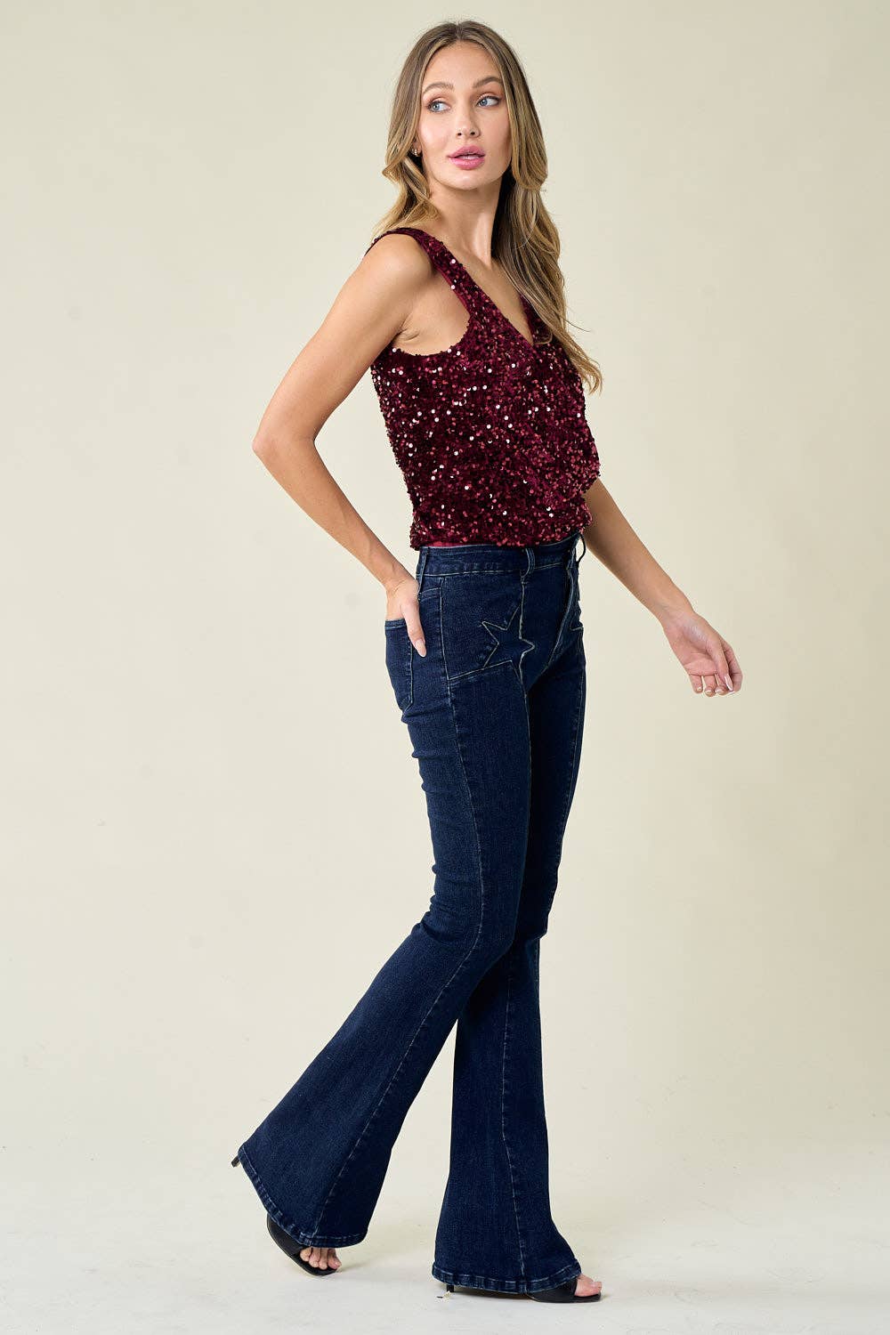 Waverly Wine Sequin bodysuit